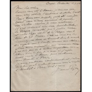 [STYKA Jan] Odręczny list do nieznanej osoby w Paryżu. Malarz wyraża radość z odrodzenia się Polski oraz wyboru Piusa XI na papieża. Dat. Capri Certosella 14.9.1922.