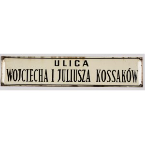 Ulica Wojciecha i Juliusza Kossaków. Tablica emaliowana, pochodząca najpewniej z miasta Łodzi. Okres powojenny.