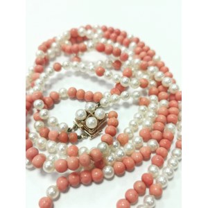 Unikatowy złoty naszyjnik z naturalnego koralu oraz pereł Akoya