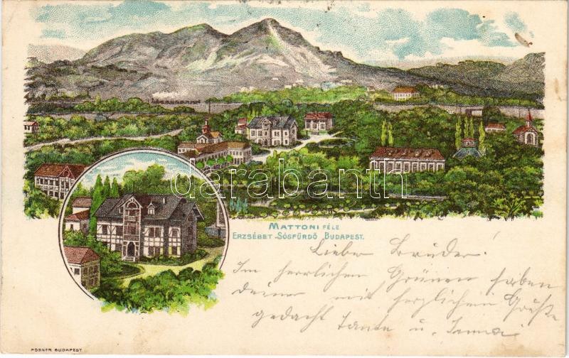 1898 Budapest XI. Kelenföld, Mattoni-féle Erzsébet királyné sósfürdő. Posner Art Nouveau (EK...