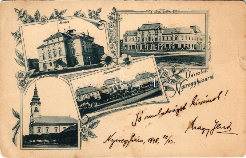 1898 Nyíregyháza, Színház, Korona szálloda, Vármegyeháza, Evangélikus templom. Art Nouveau, floral (szakadás / tear)