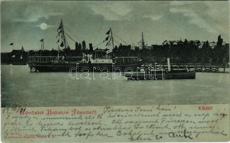 1899 Balatonfüred, kikötő, gőzhajó este holdfényben. Johannes Haacke kiadása (EK)