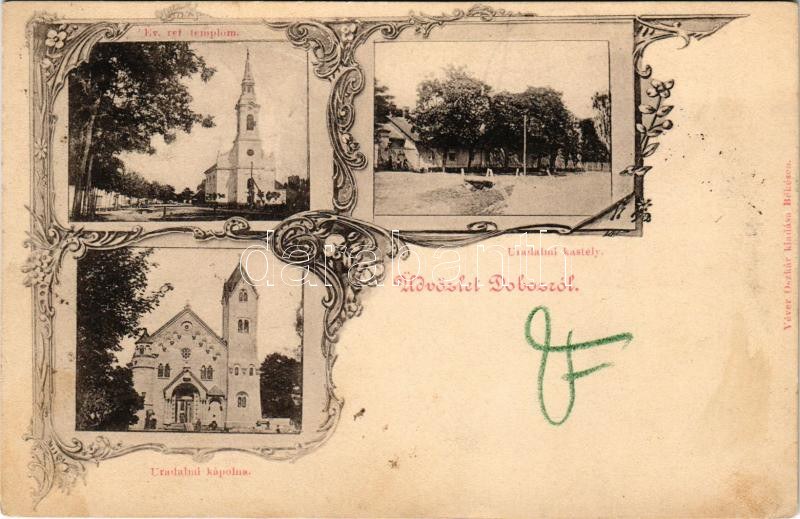 1899 Doboz, Református templom, uradalmi kastély és kápolna. Véver Oszkár kiadása. Art Nouveau, floral (Rb...
