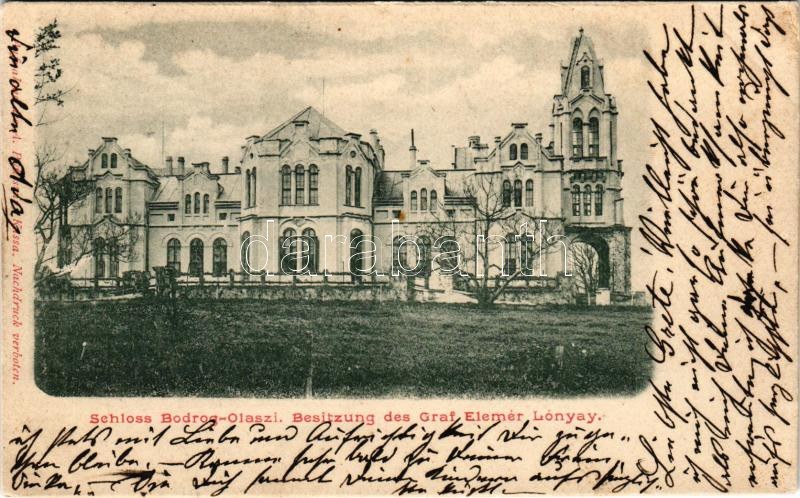 1900 Bodrogolaszi, Bodrog-Olaszi; Gróf Lónyay Elemér és Stefánia kastélya. Podleszny A. felvétele (EK)