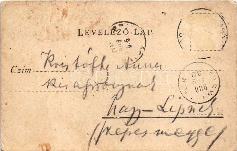 1900 Lónyabánya, Lovinobana; vasútállomás, templom és Erzsébet liget, posta, Körjegyző és anyakönyvvezetői hivatal. Szabó Fivérek fényirdája kiadása, szecessziós-virágos keret / railway station, church and park, post office, notary and registry office. Art Nouveau, floral frame (ázott / wet damage)