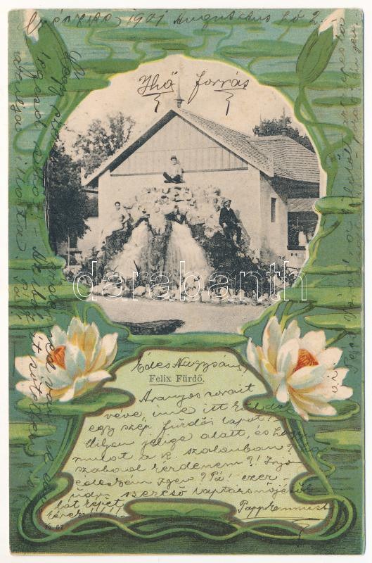 1901 Félixfürdő, Baile Felix; Hő forrás. Szecessziós litho keret, Sonnenfeld Adolf kiadása / water spring. Art Nouveau floral litho (fl)