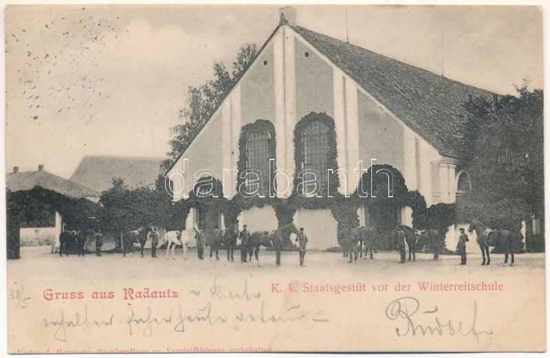 1901 Radauti, Radóc, Radautz (Bukovina, Bucovina, Bukowina); K. k. Staatsgestüt vor der Winterreitschule. Verlag J...