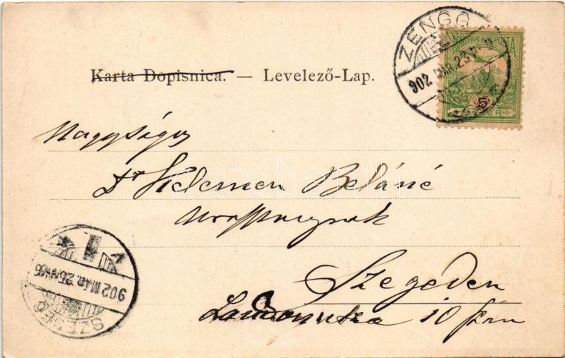 1902 Senj, Zengg; T. Devcic & Co. / látkép, vár / general view, castle