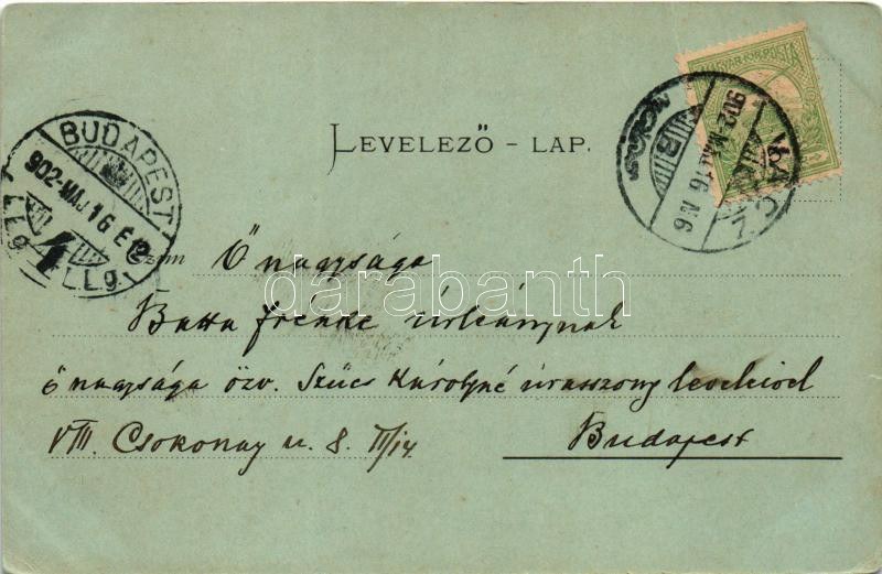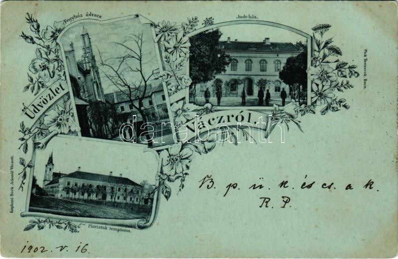 1902 Vác, Fegyház udvara, Piaristák temploma, indóház, vasútállomás. Pick Testvérek, Beck Iván kiadása. Art Nouveau, floral (EK)