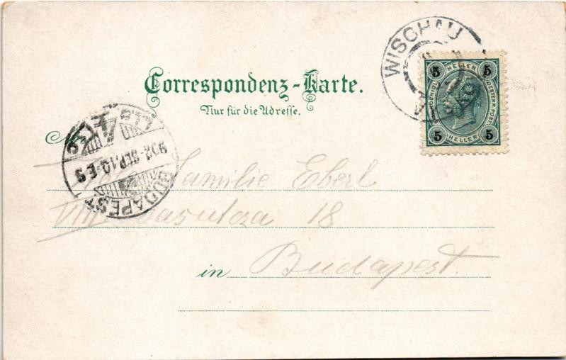1902 Vyskov, Wischau; general view. Verlag R. Sidlo. Art Nouveau, floral litho frame (EK)