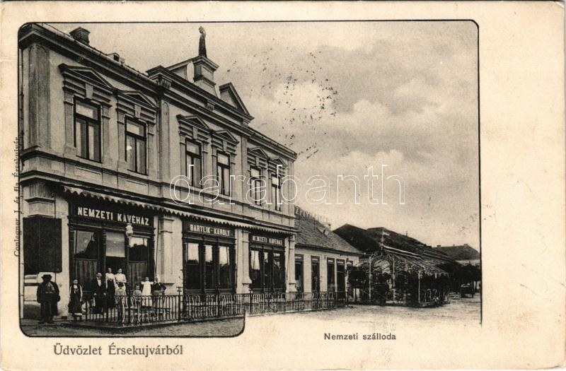 1903 Érsekújvár, Nové Zámky; Bartlik Károly-féle Nemzeti szálloda és kávéház, Központi kávéház. Conlegner J. és fia kiadása / hotel and café (Rb)