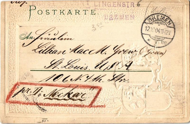 1904 Bremen, Baumwollbörse / cotton exchange palace. Art Nouveau, floral, Emb. litho with coat of arms (pinhole)