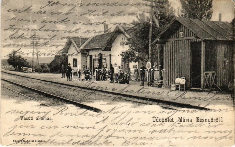 1904 Máriabesnyő (Gödöllő), vasútállomás. Neszveda Antal kiadása (szakadás / tear)