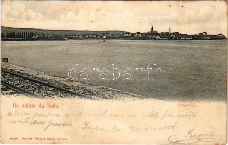 1905 Izola, Isola; Panorama / general view with railway line (fl)