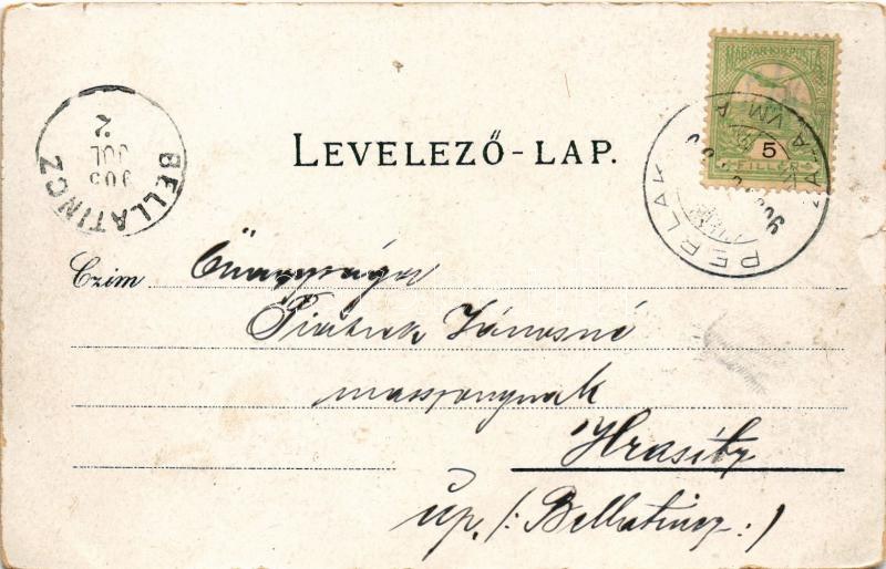 1905 Perlak, Prelog; Alsó-Muraközi Takarékpénztár, Muraköz szálloda, Sosterics Pál üzlete / savings bank, hotel, shop. Art Nouveau, floral (szakadás / tear)