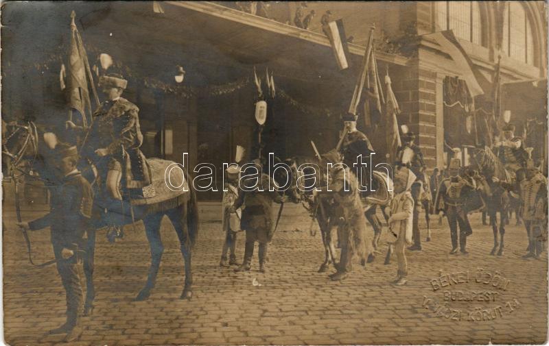 1906 Budapest VII. Keleti pályaudvar, Rákóczi és bujdosók hamvainak hazahozatala, főhivatalnokok felvonulása díszmagyar öltözetben. Békei Ödön photo (EB)