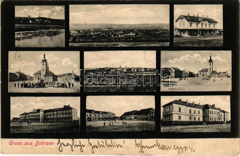 1906 Dobrany, Dobrzan; multi-view postcard with railway station (r)