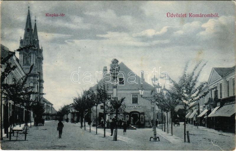 1907 Komárom, Komárno; Klapka tér, Szentháromság szobor, Horváth József üzlete. Czike Dénes kiadása / square...