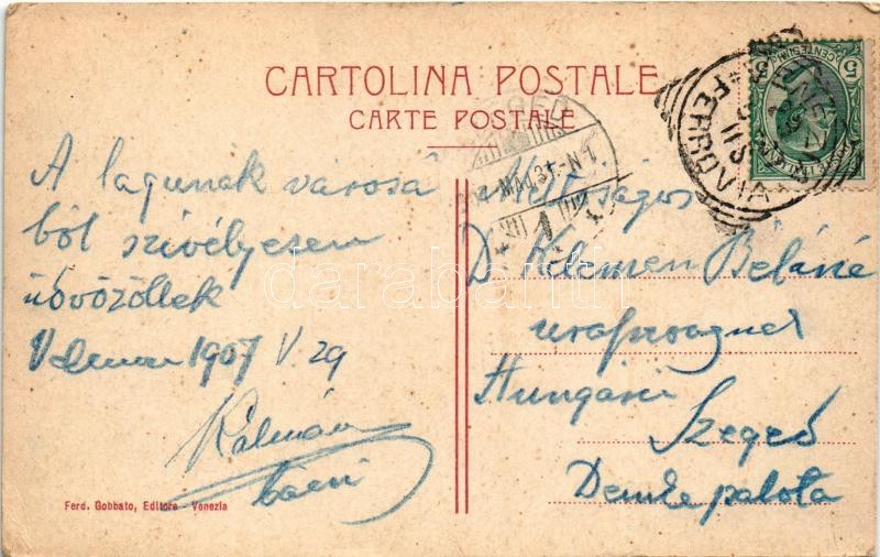 1907 Venezia, Venice; Isola S. Giorgio. Ferd. Gobbato Editore / San Giorgio Maggiore island, boats, litho + ...