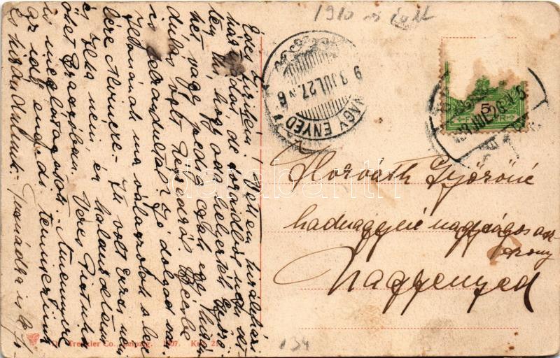 1908 Brassó, Kronstadt, Brasov; Totalansicht vom Schlossberg. Dr. Trenkler & Co. / látkép a Fellegvárról ...
