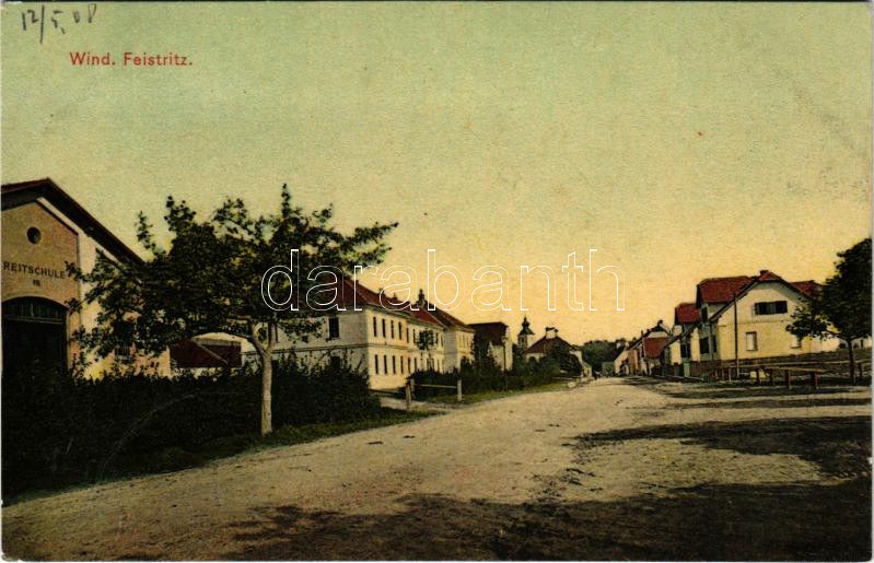 1908 Slovenska Bistrica, Windisch-Feistritz; Reitschule / riding school, street. Verlag Rosa Pitschl (crease)