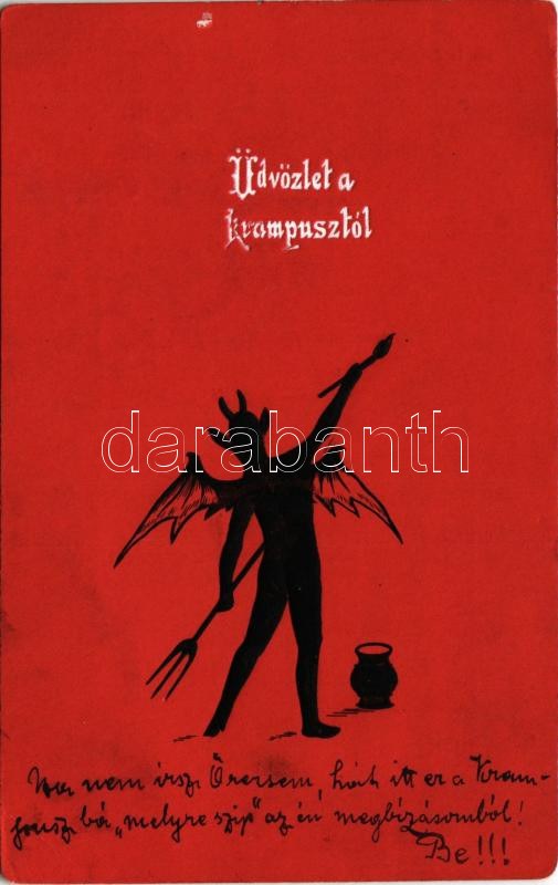 1909 Festő Krampusz / Painter Krampus. Emb. litho (EK)