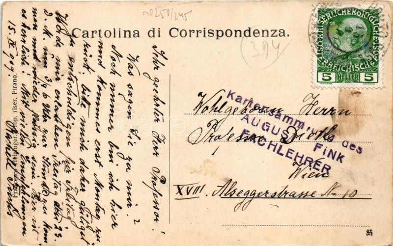 1909 Portoroz, Portorose; Bagni di spiaggia Porto Rose presso Pirano / beach, boat. Prop. riser. Francesco Heizinger (worn corners)