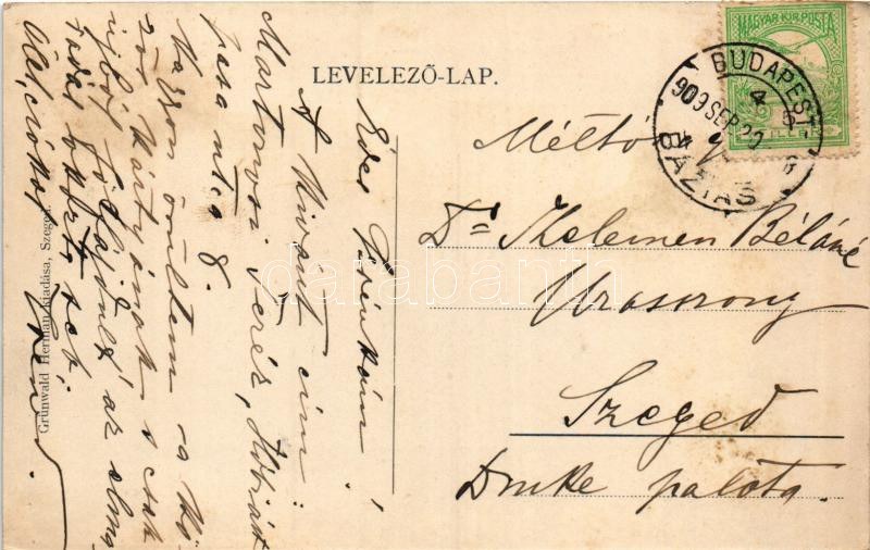 1909 Pusztaszer, Vasútállomás gőzmozdonnyal, Szeged-Felső központ. Grünwald Herman kiadása + "BUDAPEST - BÁZIÁS 4. SZ....