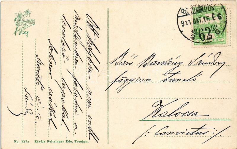 1911 Podolin, Podolínec (Szepes, Zips); látkép. Ifjabb Báró Barkóczy Sándornak (1896-1925) címezve. Feitzinger Ede kiadása No. 927a. / general view (EK)
