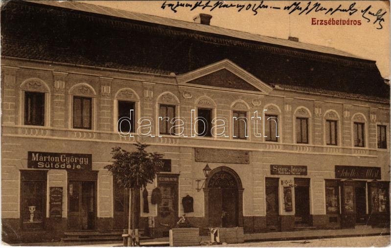 1912 Erzsébetváros, Elisabethstadt, Dumbraveni; Márton György sütödéje, Seer János fodrász terme...
