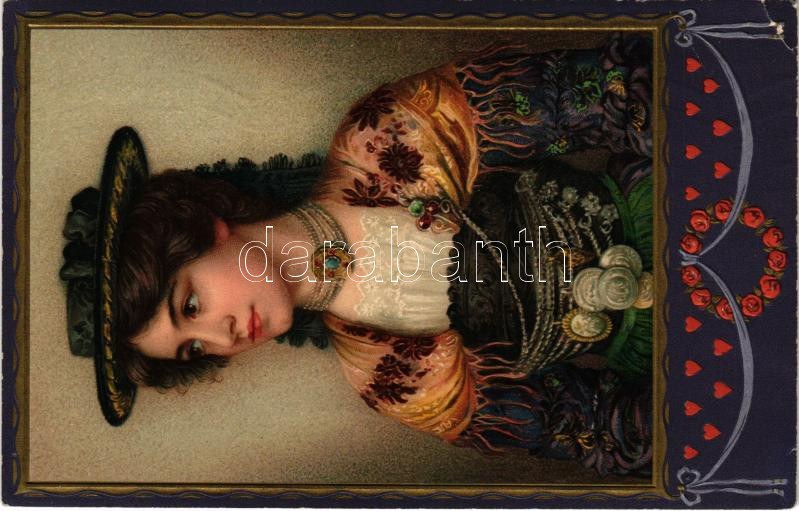 1914 Lady art postcard. Meissner & Buch Künstler-Postkarten Serie 1454. "Ländliche Schönheiten" Emb. litho (EK...