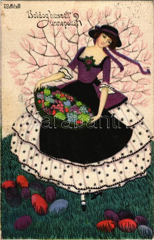 1915 Boldog Húsvéti Ünnepeket! / Easter lady. B.K.W.I. 4636-2. s: Mela Koehler (EK)
