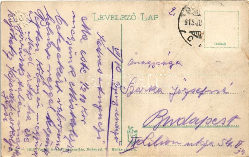 1915 Pozsony, Pressburg, Bratislava; Donaulände / Dunasor, vár, gőzhajó magyar zászlóval. Vasúti levelezőlapárusítás 19...