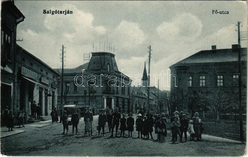 1915 Salgótarján, Fő utca, cukrászda, üzletek. Friedler Samu kiadása (EK)