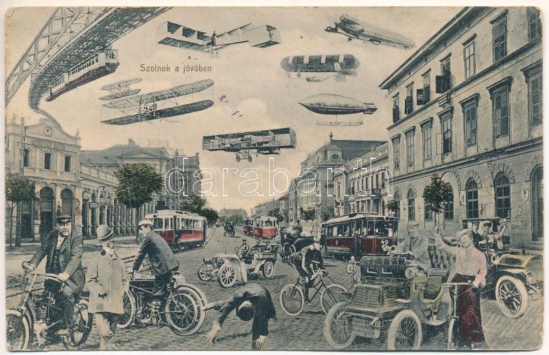 1915 Szolnok, a jövőben montázs. Faragó Sándor kiadása / in the future montage (EK)