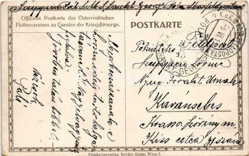1915 Unterseeboot U XII greift die französische Hochseflotte in der Otrantostrasse an. Offizielle Postkarte des Österr. Flottenvereines zugunsten der Kriegsfürsorge - K.u.K. Kriegsmarine. Brüder Kohn Wien I. / Austro Hungarian U-12 submarine with French Navy fleet in the battle of Otranto s: Harry Heusser + "K.U.K. KMARINE FELDPOSTAMT POLA" (EB)