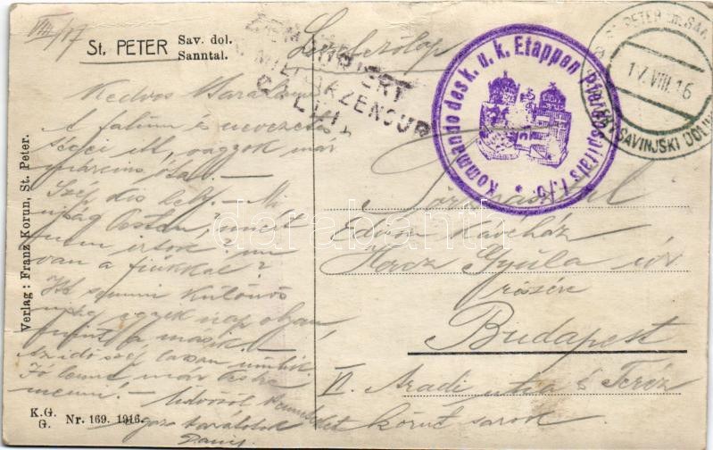 1916 Sempeter v Savinjski Dolini, Sanntal. Verlag Franz Korun / church, street. photo + "Kommando des k.u.k...