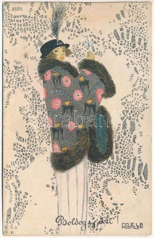1917 Boldog Karácsonyi Ünnepeket! / Art Nouveau lady, B.K.W.I. 3090-2. s: Mela Koehler (r)