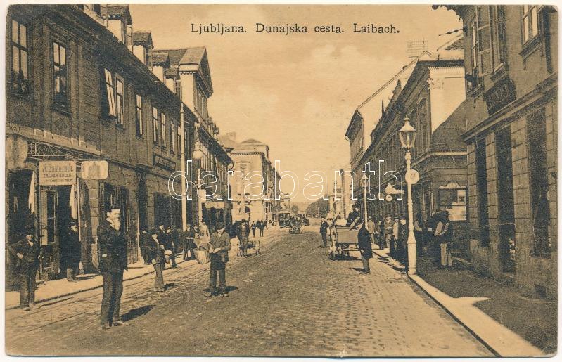 1917 Ljubljana, Laibach; Dunajska cesta / street view, shop of K. Camernik, tram + "K.U.K. RESERVESPITAL Nr. 3...
