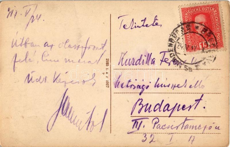 1917 Prerov, Prerau; Ringplatz, Kaserne / market square, shops, K.u.K. military barracks. Art Nouveau frame