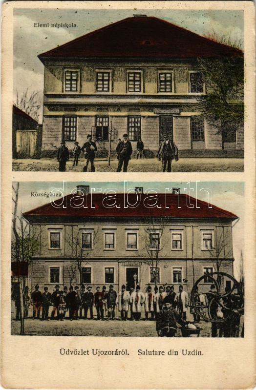 1918 Újozora, Új-Ozora, Uzdin; Elemi iskola, Községháza. Klauber Ignác kiadása / elementary school, town hall (EK)