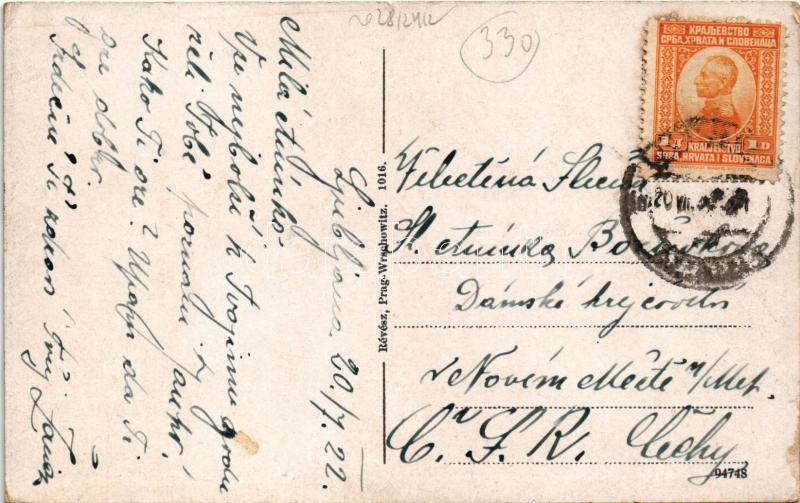 1922 Ljubljana, Laibach; Selenburgove ulice / Schellenburggasse / street view, shops of Jakob Traun, Cascio, P. Cassermann (worn corners)
