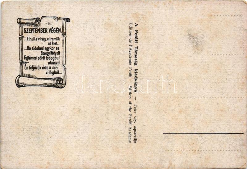 1923 Petőfi Centenárium: Szeptember végén. A Petőfi Társaság kiadványa/ Hungarian folklore art postcard. Edition of the Petőfi Academy s: Fejes Gy.