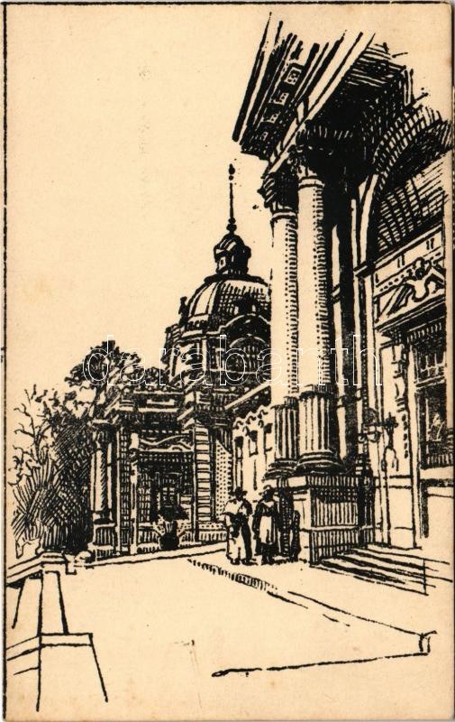 1924 Budapest XIV. Széchenyi fürdő bejárata grafikai művészlap (non PC)