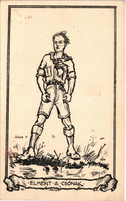 1925 Elment a csónak. Magyar cserkész művészlap / Hungarian boy scout art postcard s: Petry + ...