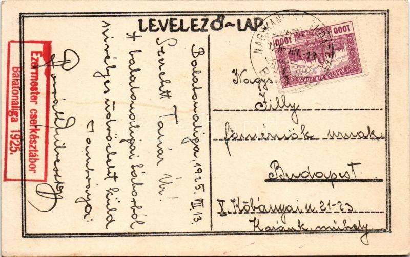 1925 Elment a csónak. Magyar cserkész művészlap / Hungarian boy scout art postcard s: Petry + "Ezermester cserkésztábor Balatonaliga 1925" (fl)