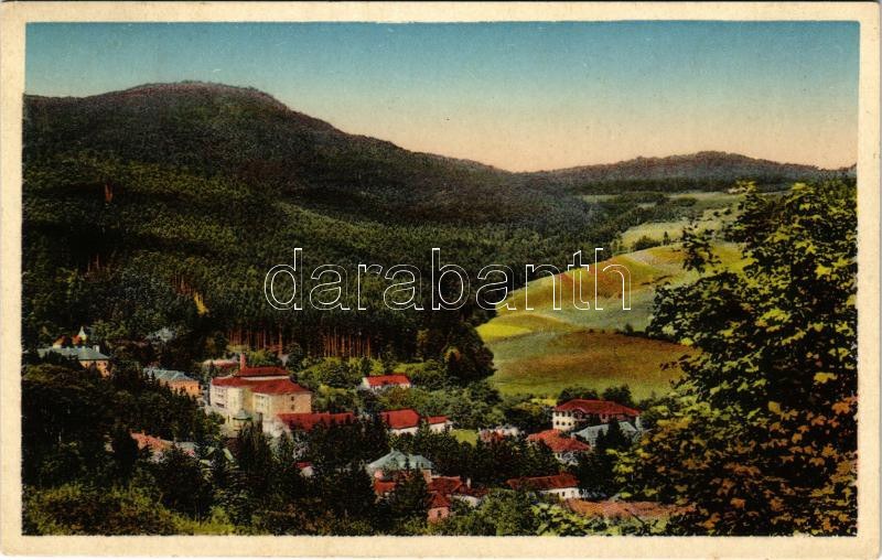 1934 Bártfa, Bártfafürdő, Bardejovské Kúpele, Bardiov, Bardejov; Panorama / látkép. Viktor Neumann kiadása ...