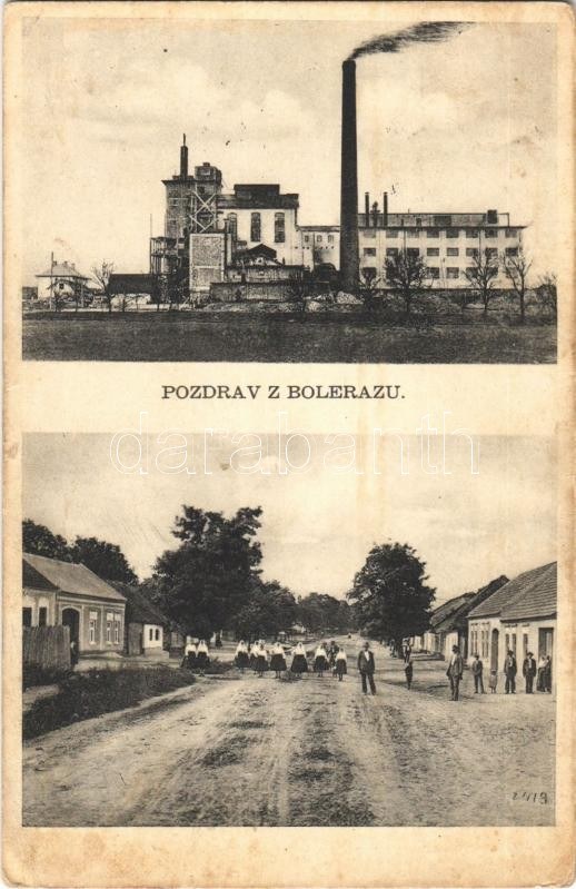 1935 Bélaház, Boleráz; Fő utca, kukoricakeményítő gyár / main street, cornstarch factory (fl...