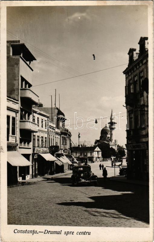 1935 Constanta, Konstanca; Drumul spre centru / street view, automobile, mosque, shops, beer hall (fl...