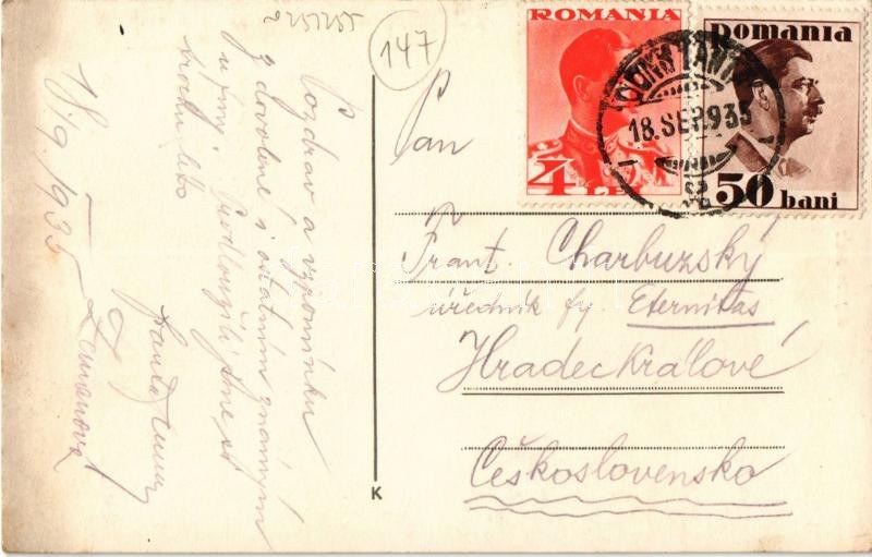 1935 Constanta, Konstanca; Drumul spre centru / street view, automobile, mosque, shops, beer hall (fl)